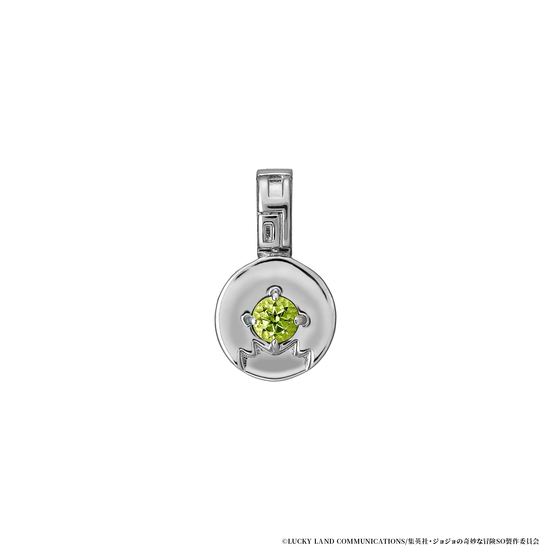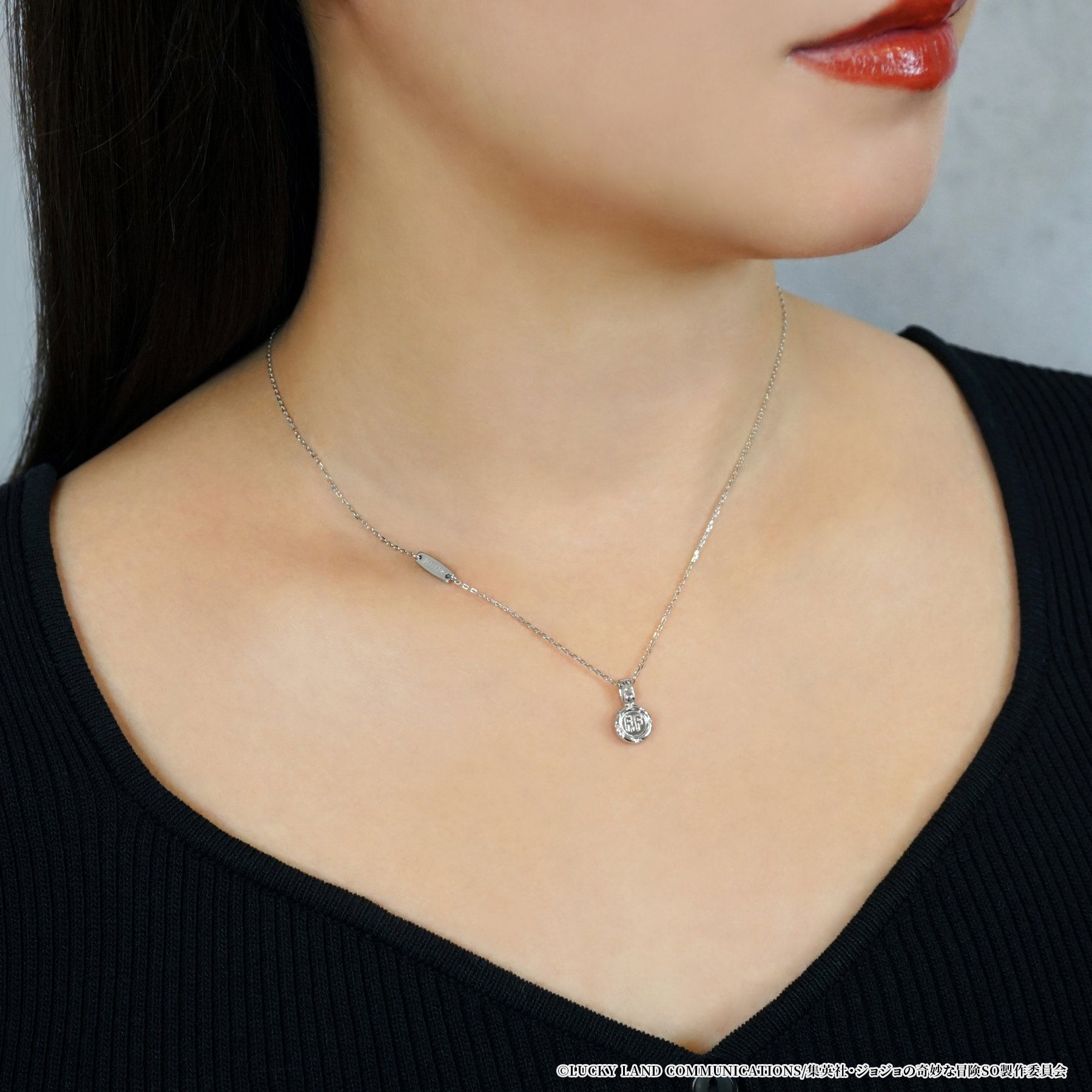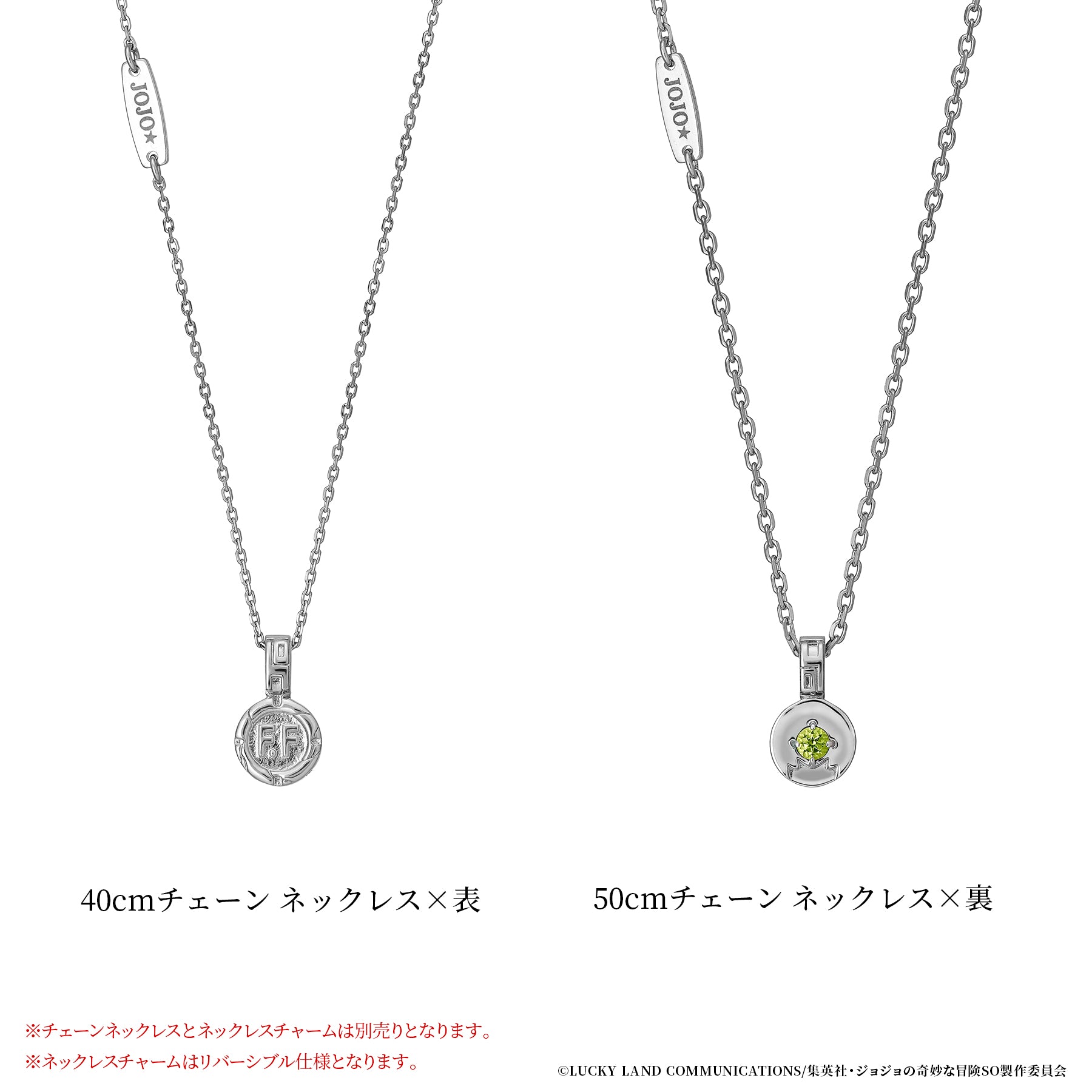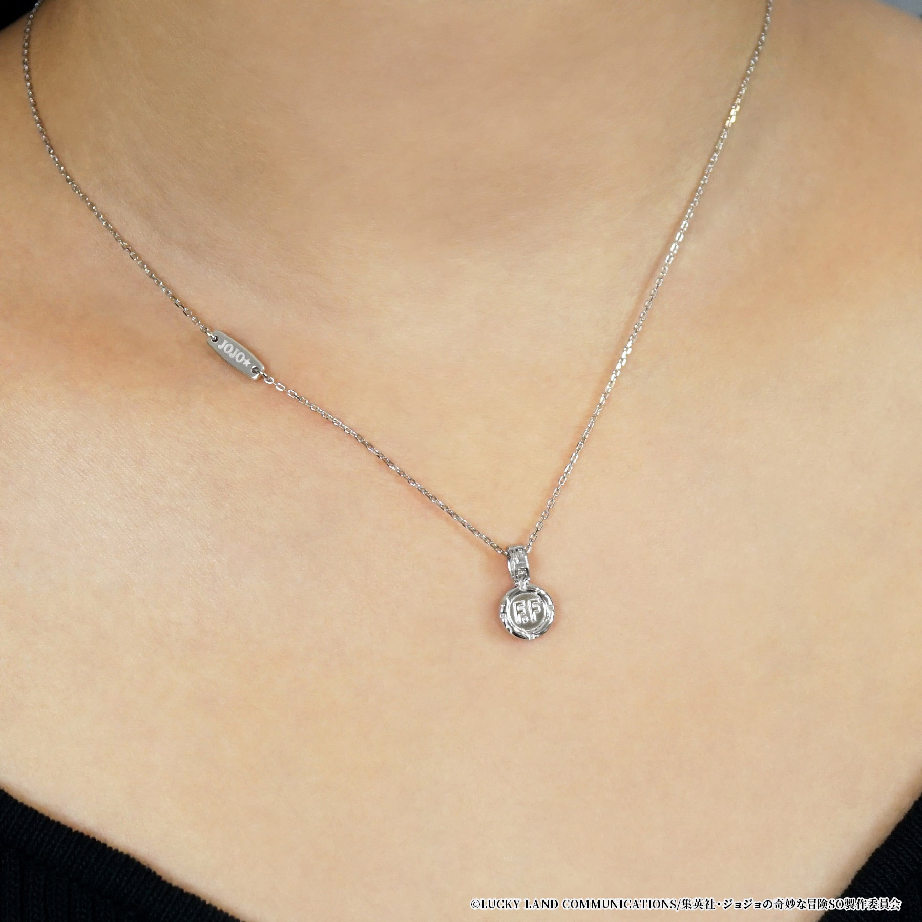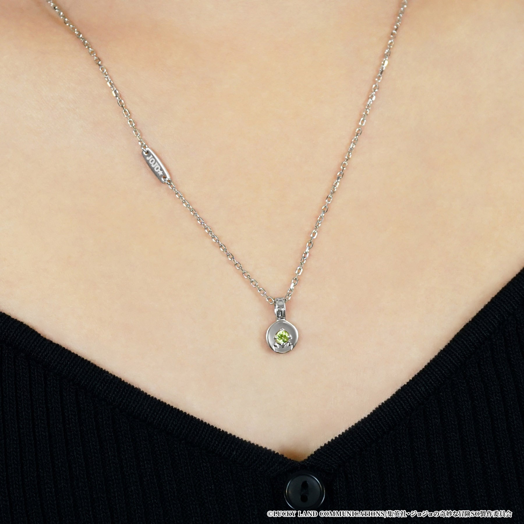 アニメ『ジョジョの奇妙な冒険 ストーンオーシャン』のキャラクターとスタンドを表現したネックレスチャーム。共通デザインとして、空条徐倫のベルトのバックルをバチカンにデザインしました。各キャラクターをイメージした天然石をセッティングし、表と裏で異なる表情を楽しめるリバーシブル仕様にもなっています。それぞれサイズや形を変えたバリエーション豊かなラインナップなので、お好きな組み合わせで自由にコーディネートが可能です。別売りの『JOJO★』刻印入りチェーンネックレスと合わせると、より一層『ジョジョの奇妙な冒険』の世界を肌で感じて頂けます。