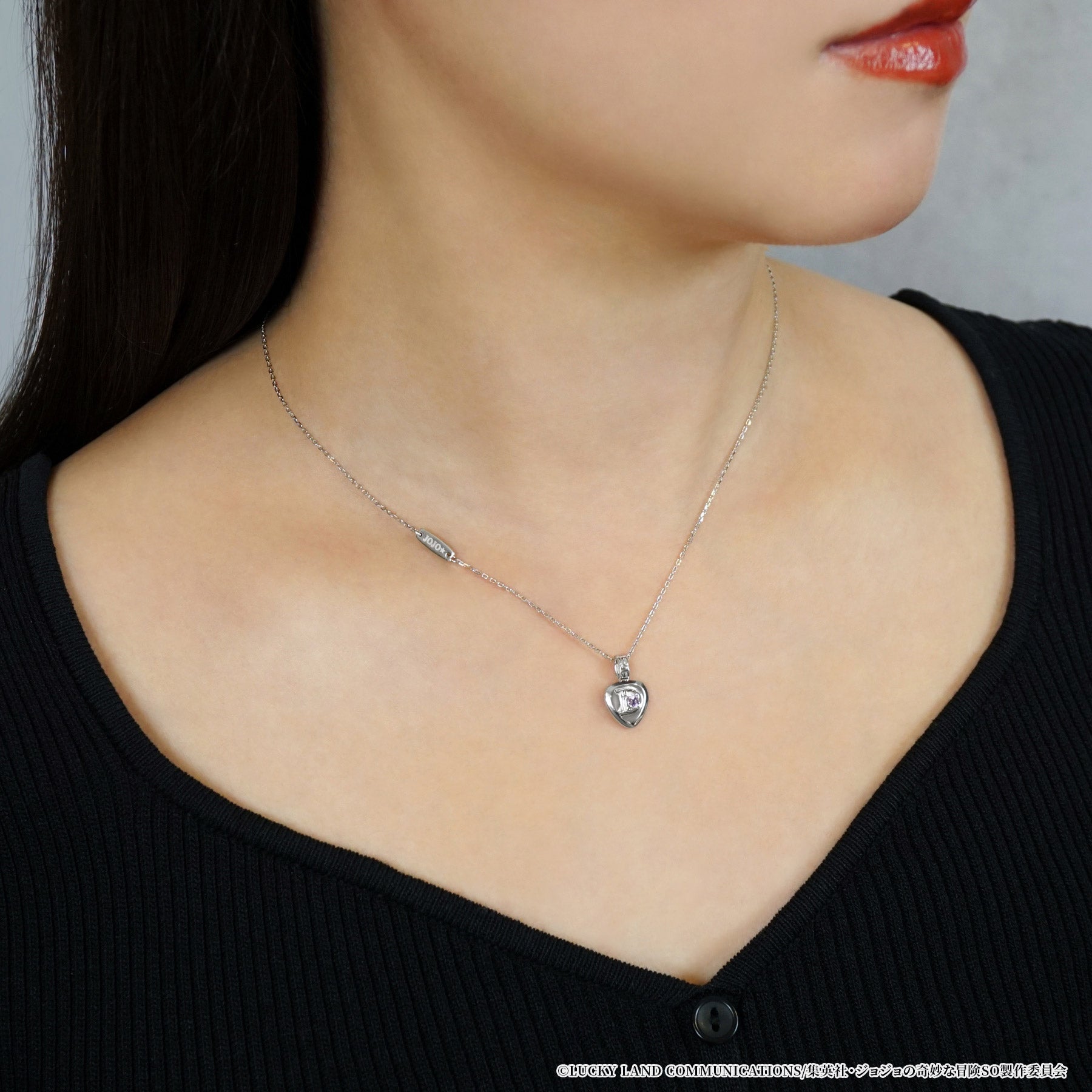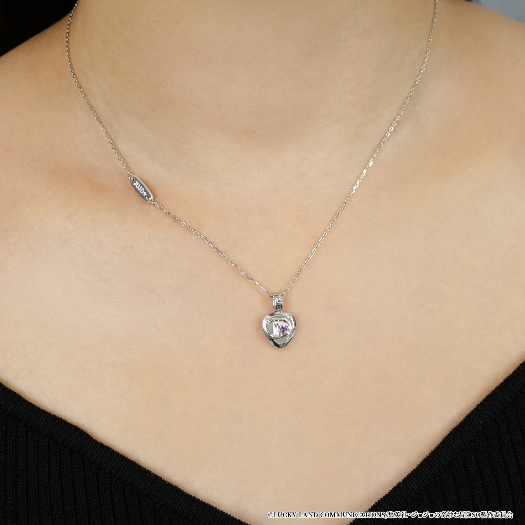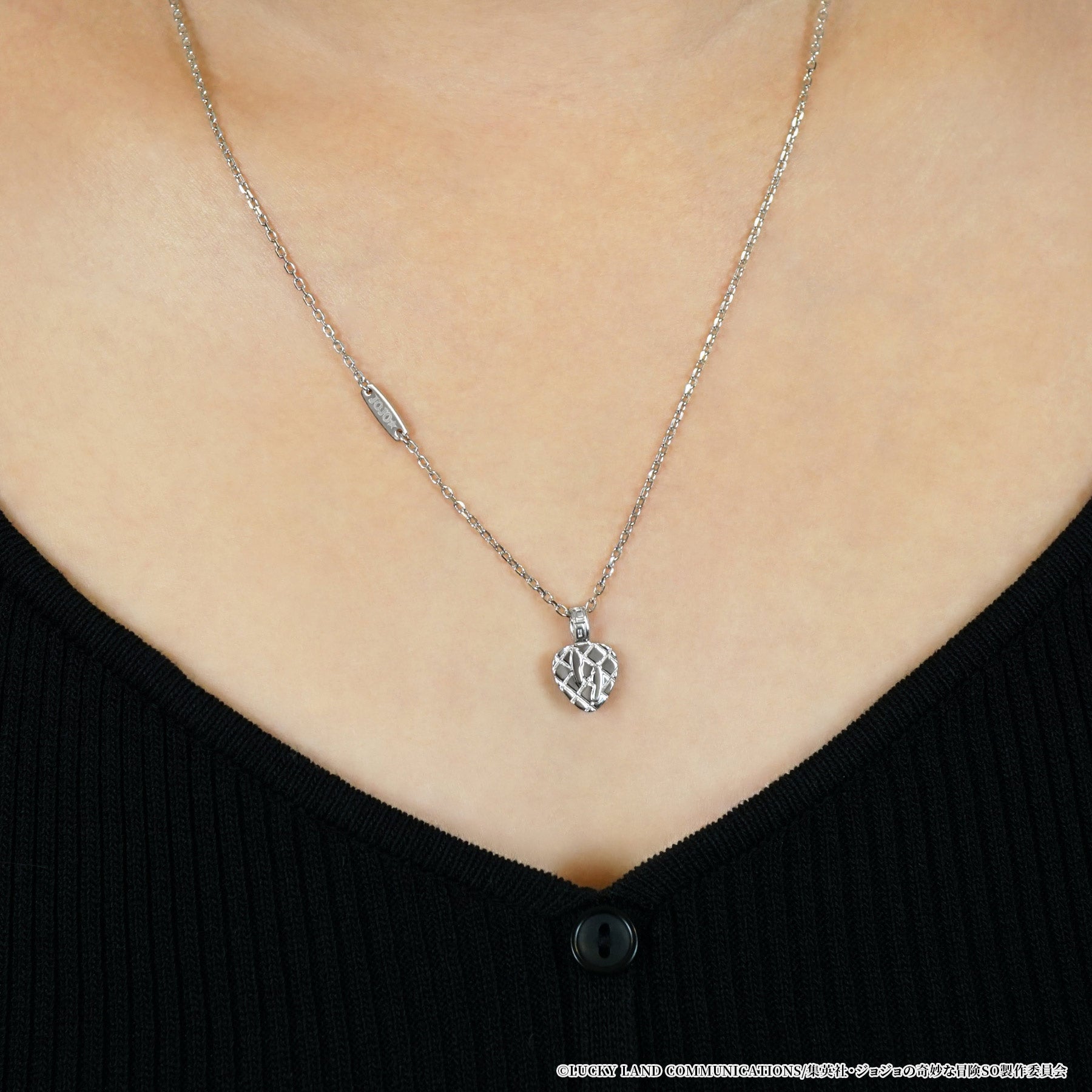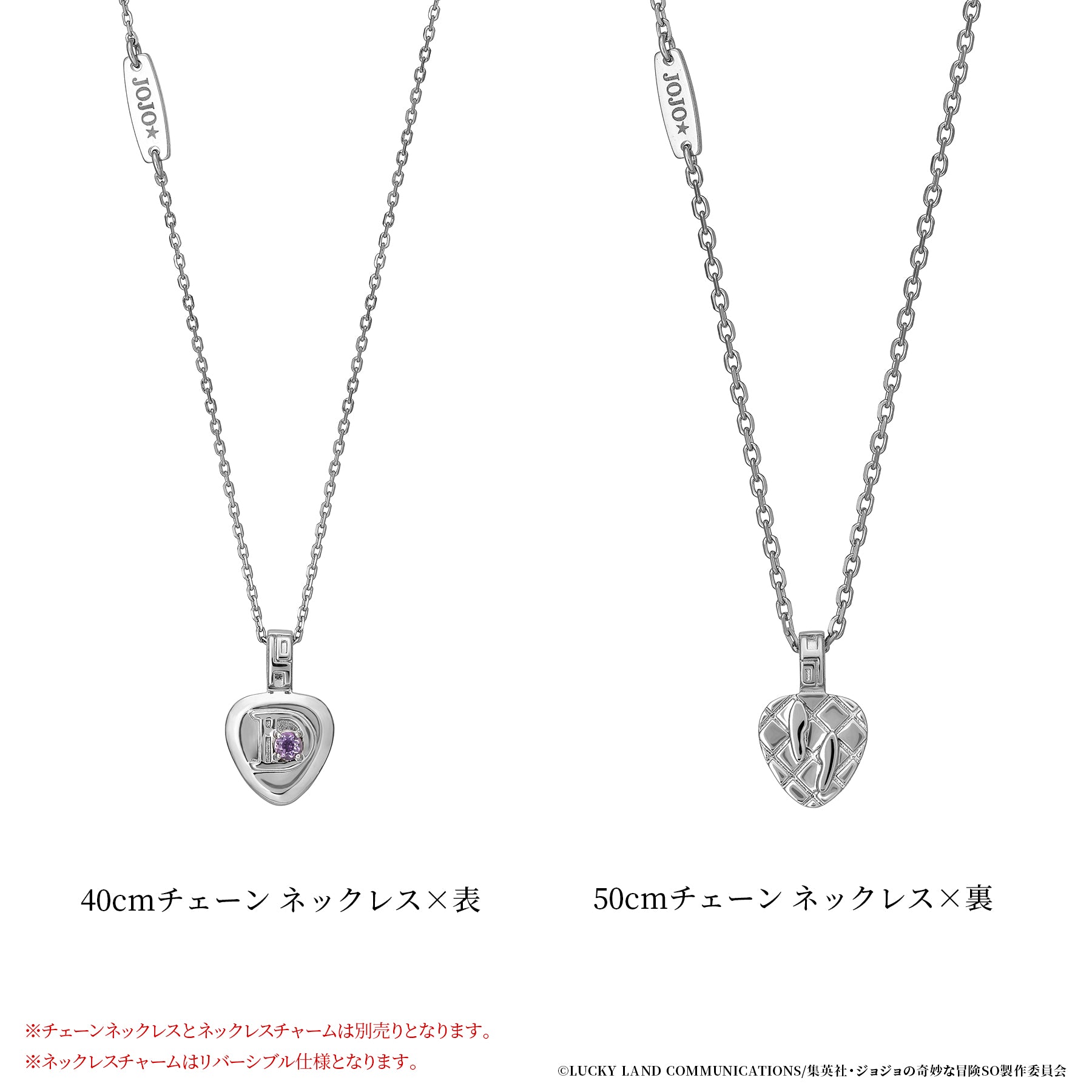 アニメ『ジョジョの奇妙な冒険 ストーンオーシャン』のキャラクターとスタンドを表現したネックレスチャーム。共通デザインとして、空条徐倫のベルトのバックルをバチカンにデザインしました。各キャラクターをイメージした天然石をセッティングし、表と裏で異なる表情を楽しめるリバーシブル仕様にもなっています。それぞれサイズや形を変えたバリエーション豊かなラインナップなので、お好きな組み合わせで自由にコーディネートが可能です。別売りの『JOJO★』刻印入りチェーンネックレスと合わせると、より一層『ジョジョの奇妙な冒険』の世界を肌で感じて頂けます。