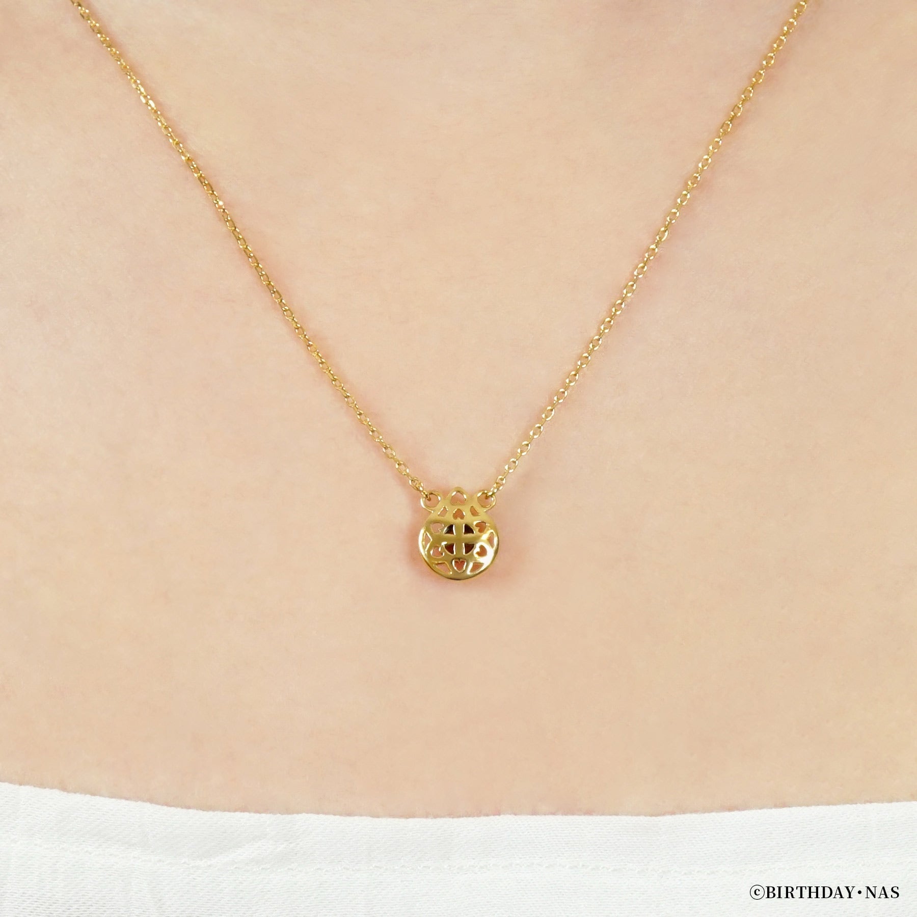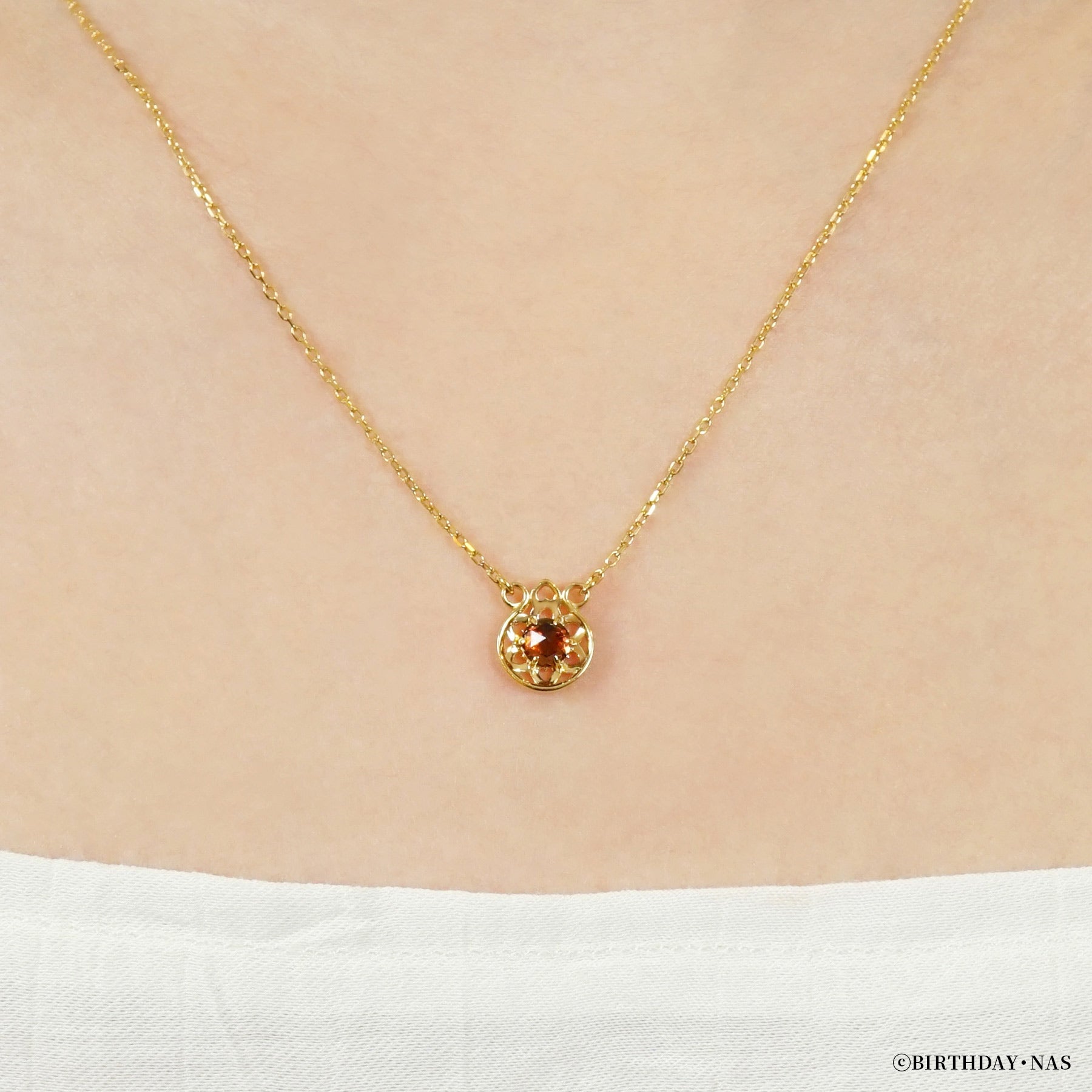 ふたごのプリンセスが持つアイテム「サニールーチェ」にもデザインされているプロミネンスの紋章をモチーフに、2人をイメージした天然石を使ったリバーシブルネックレスです。上質なスターリングシルバーで細やかな透かし模様を施し、中心には瑞々しいローズカットの天然石がきらめきます。ローズカットは“バラのつぼみ”のようなふっくらとした立体的なカットで、これから成長し、花開いていくプリンセスの姿も思わせます。細部までこだわったデザインは、大人もデイリー使いできる本格的なジュエリーに仕上がっています。