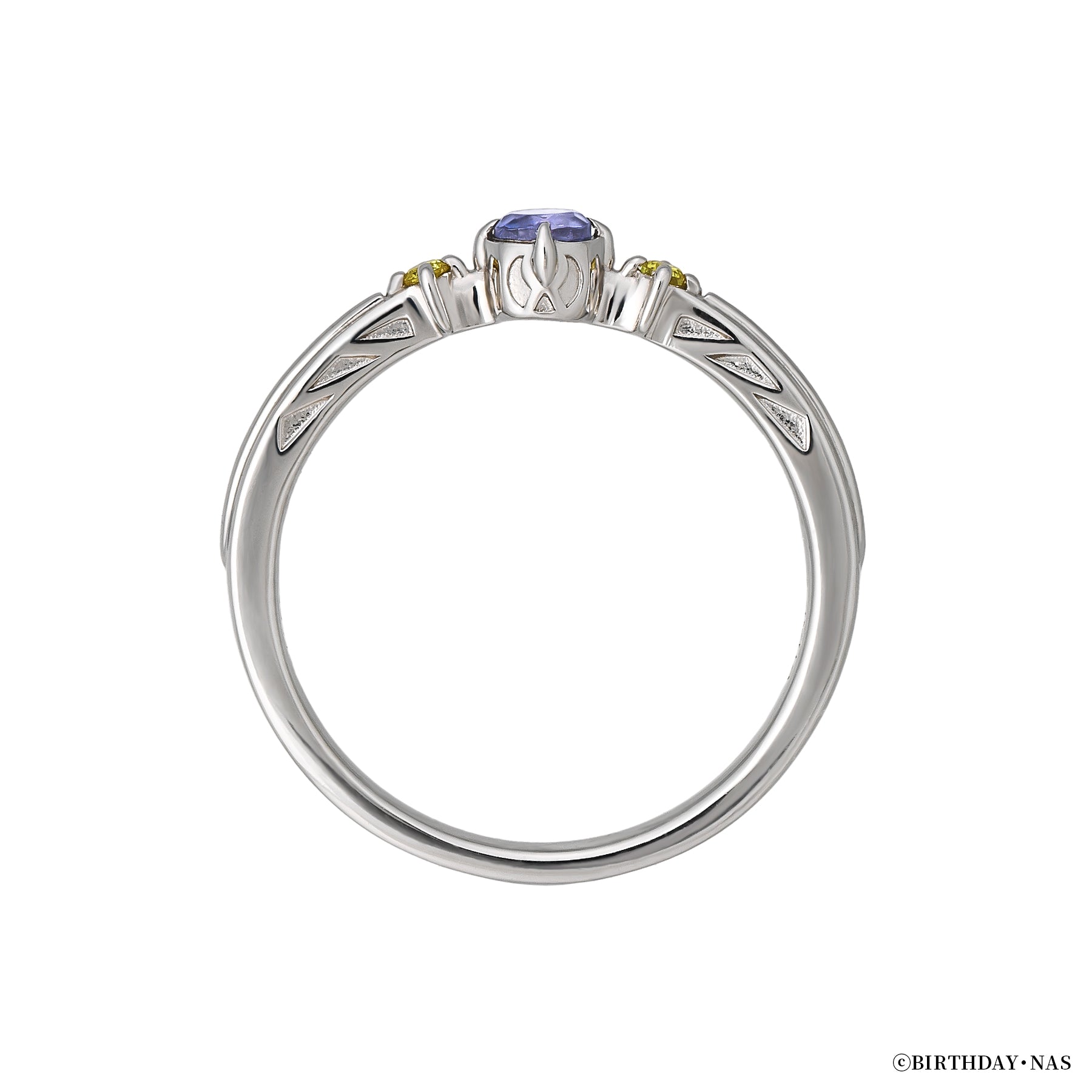 ブライトとシェイド、2人のプリンスをそれぞれイメージした本格的なファッションリング。センターには瞳の色を表現した天然石が輝き、サイドには服の色からセレクトしたカラーストーンを添えました。アームの側面には服の象徴的な柄を施し、石座の裏面には各国のマークを刻むなど、さり気なくもしっかりとキャラクターの個性を表現。アーム内面にはキャラクター名の刻印も入っており、ジュエリーとしてもキャラクターグッズとしても満足度の高い仕上がりになっています。