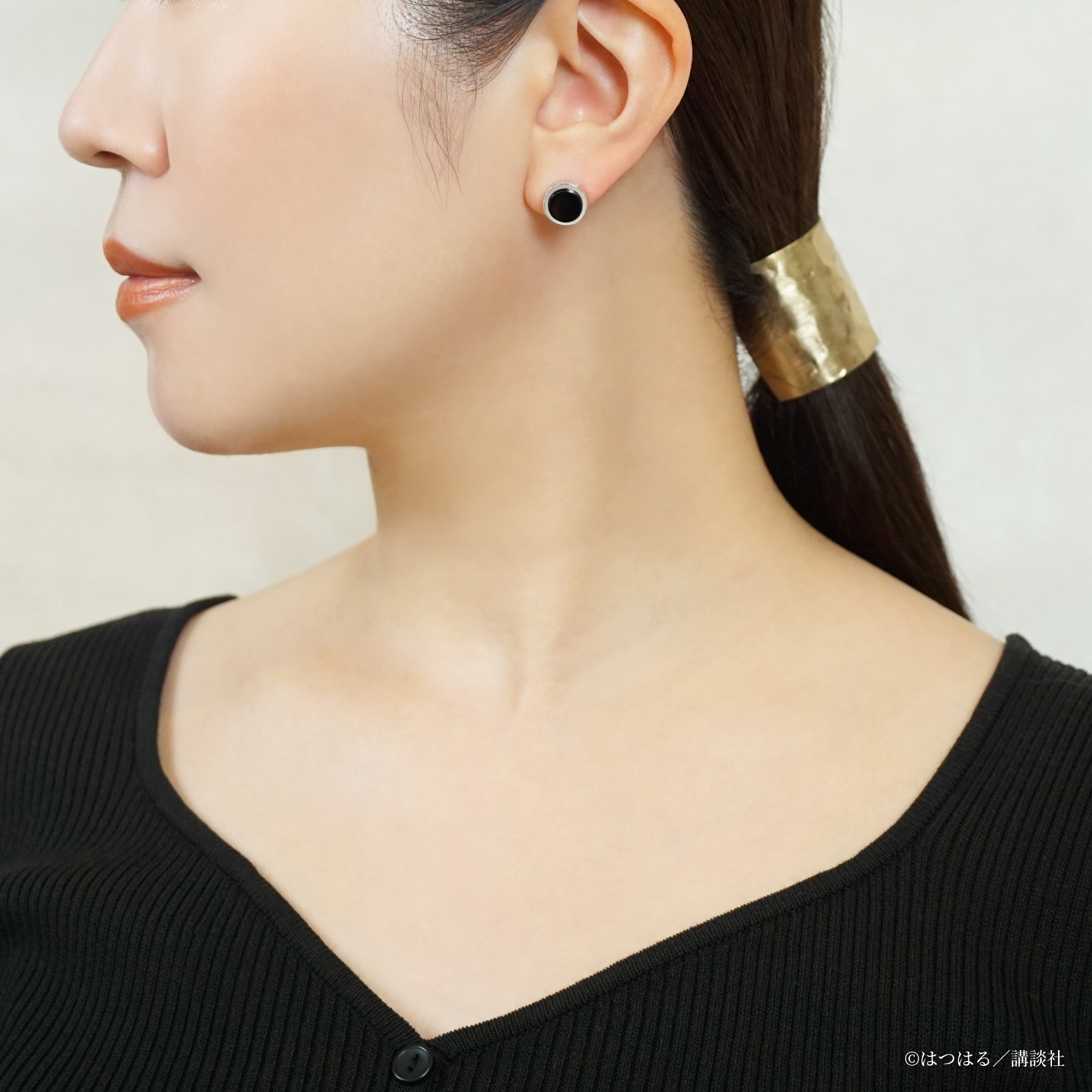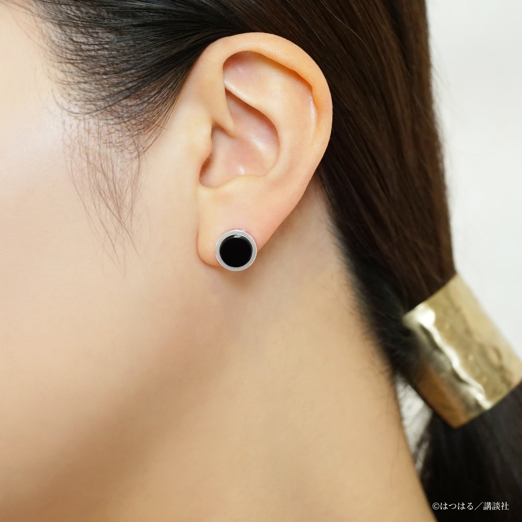 啓弥が着けているピアスをリアルなサイズ感で追求し再現。古くから『魔除けの石』として知られるオニキスをセッティングしました。オニキスは悪縁を断ち、成功や幸福、夫婦円満をもたらすと言われており、悪い男から一咲を守ろうとする啓弥にぴったりの天然石をセレクトしています。裏側には桜の花を刻印し、作品の世界観を表現しました。