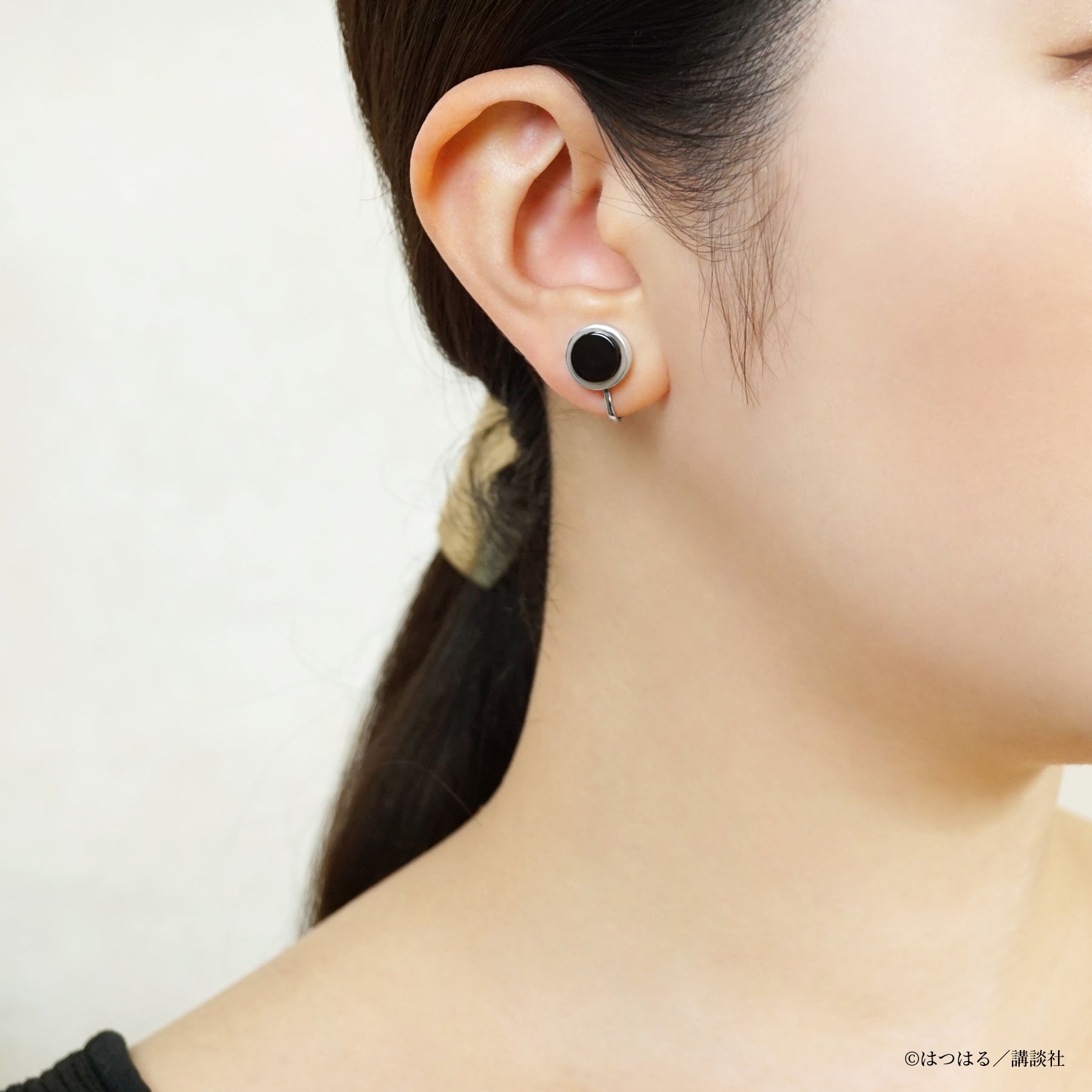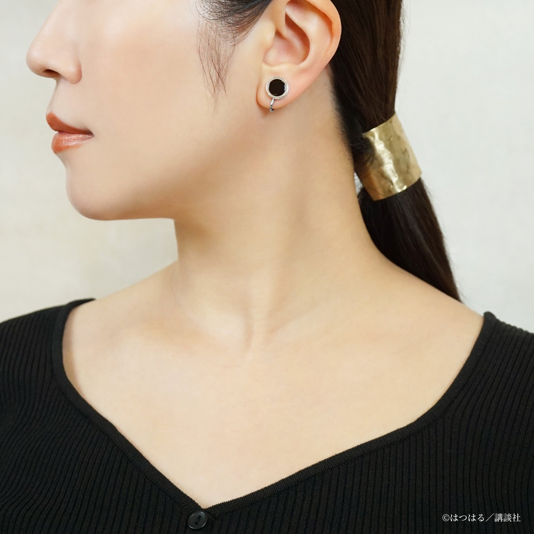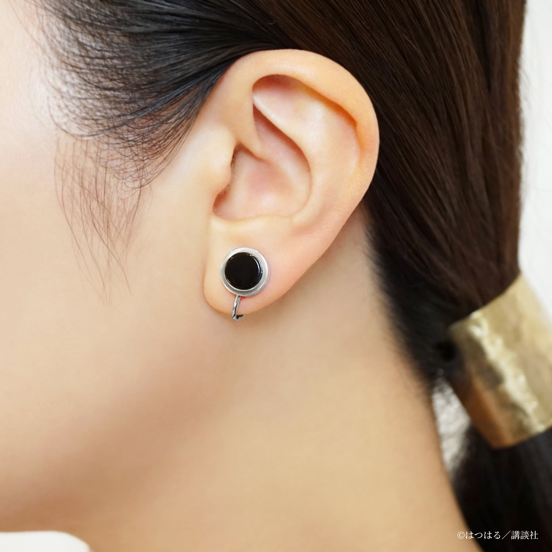 啓弥が着けているピアスをリアルなサイズ感で追求し再現したイヤリング。古くから『魔除けの石』として知られるオニキスをセッティングしました。オニキスは悪縁を断ち、成功や幸福、夫婦円満をもたらすと言われており、悪い男から一咲を守ろうとする啓弥にぴったりの天然石をセレクトしています。裏側には桜の花を刻印し、作品の世界観を表現しました。