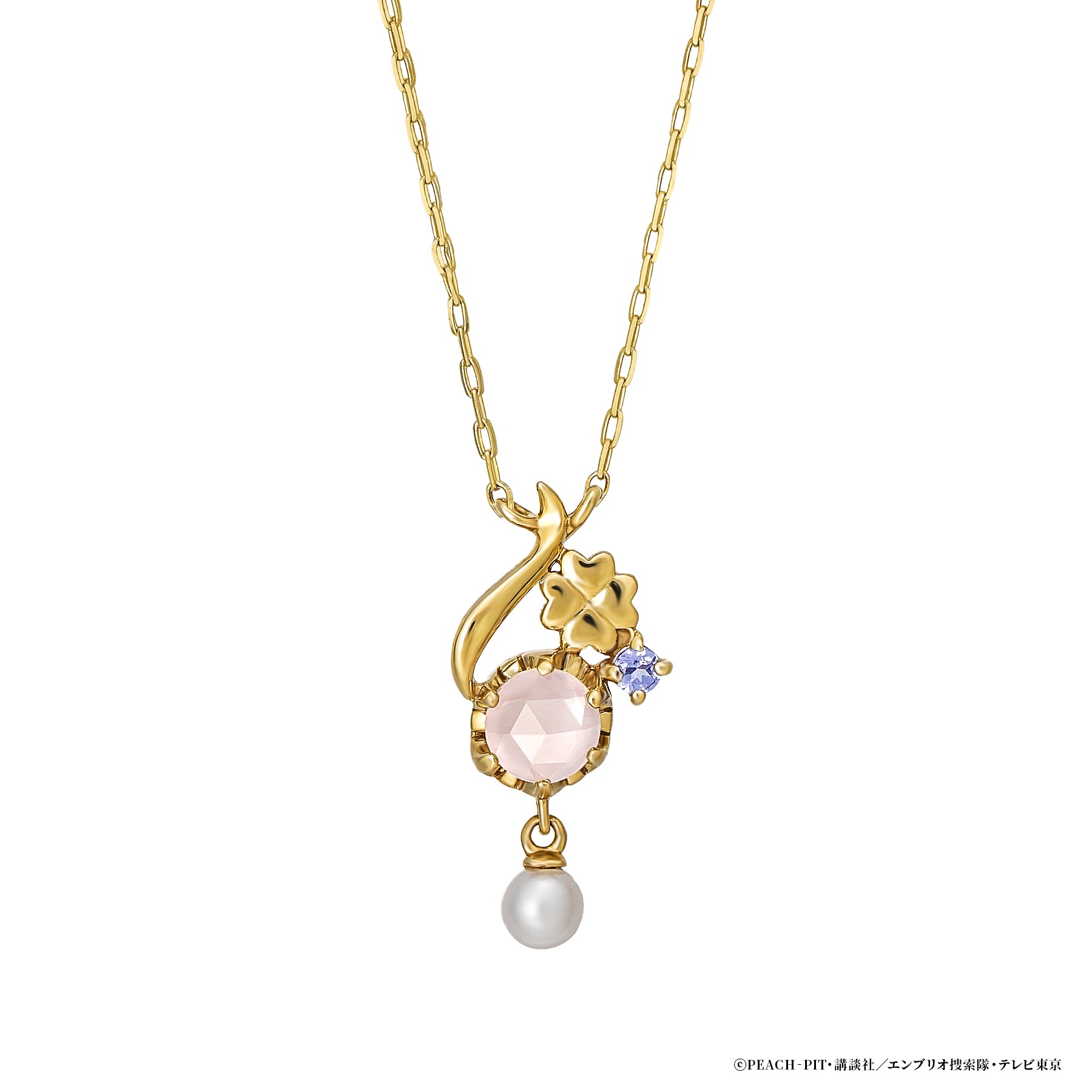 “キャラなり”によってなりたい自分になれる瞬間をイメージした心躍るネックレス。日奈森あむをイメージしたローズクォーツと月詠イクトをイメージしたタンザナイトをセッティングし、それぞれが“キャラなり”で変身する時の心のキラメキを表現しています。ハンプティ・ロックとダンプティ・キーの共通モチーフであるクローバーがつやめき、ココロのたまごをイメージしたパールがさり気なく揺れるデザインは、大人フェミニンで上品な印象を与えてくれます。