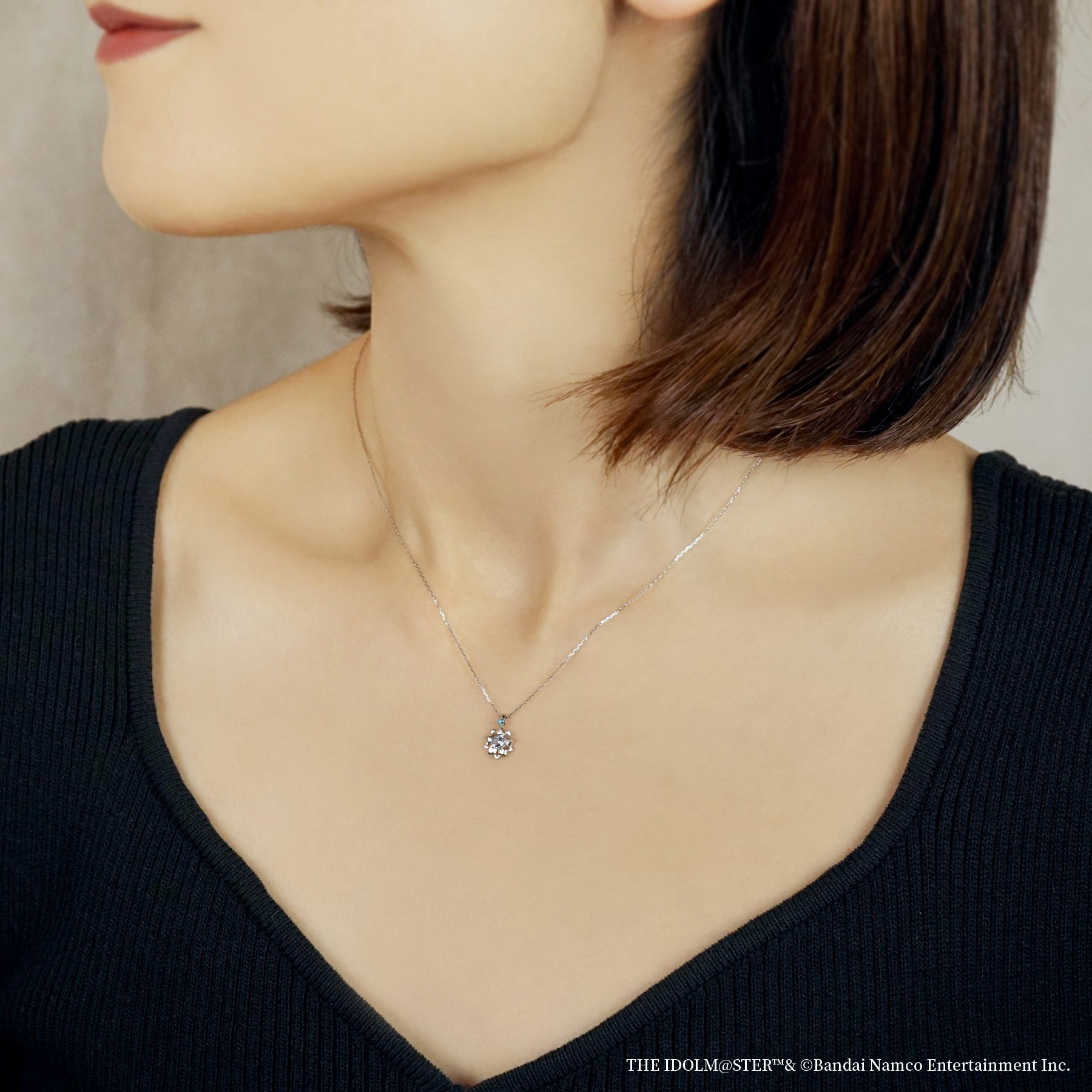イラストで着けている首元の装飾をモチーフに、繊細なシルエットと2種類のブルーのストーンを使用し、鷹城恭二をイメージしたネックレスを作り上げました。優しい透明感と深い輝きで、鷹城恭二の落ち着きと芯の強さを表現。自らの力で未来をつかもうとする、その内に秘めた情熱と、端正な佇まいをイメージしています。身につけるたびに、彼のように凛とした気持ちになれるネックレスは、デイリーに使える本格的なジュエリーです。