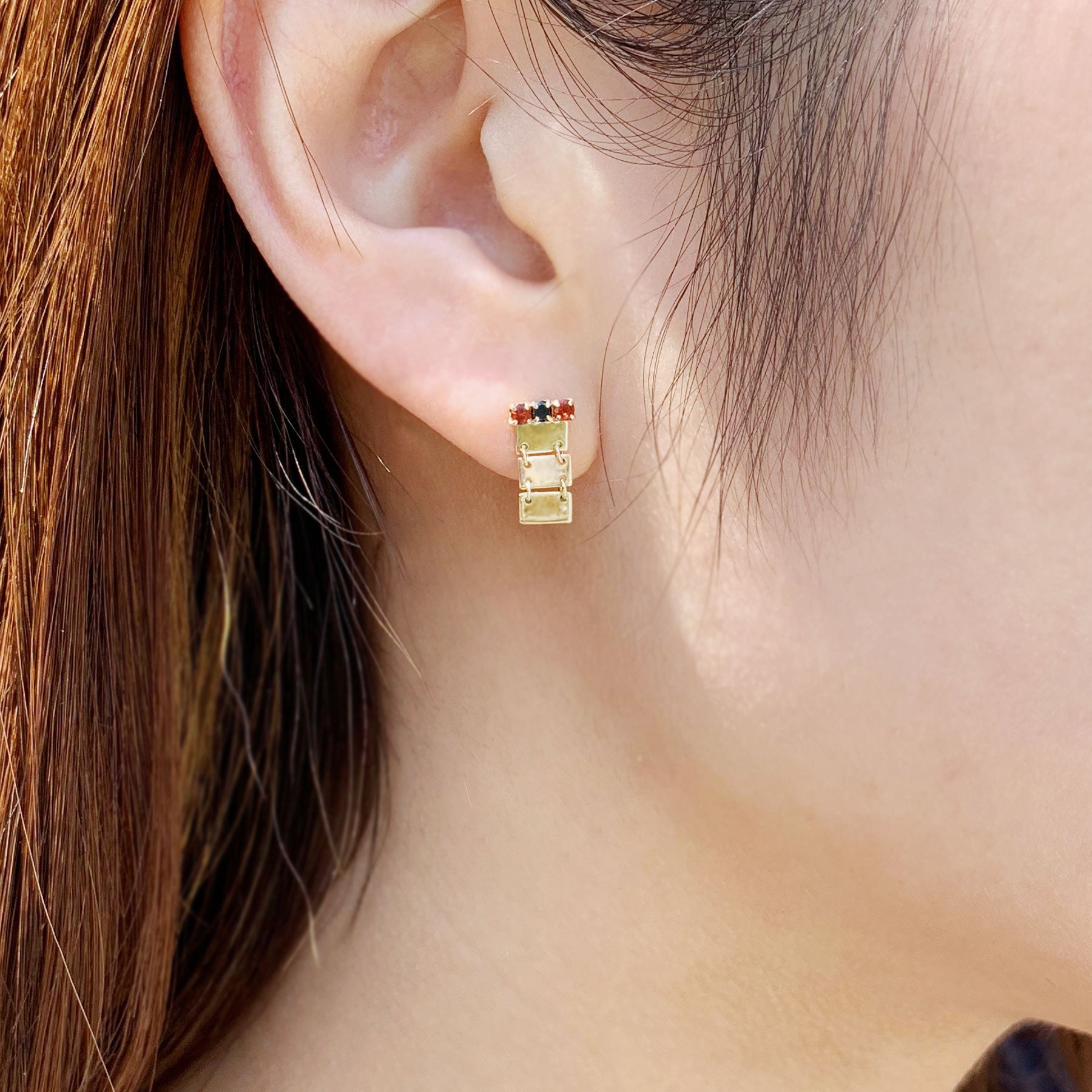 K10イエローゴールド(ポスト、キャッチ部分はK18イエローゴールド)、ガーネット、オニキス |