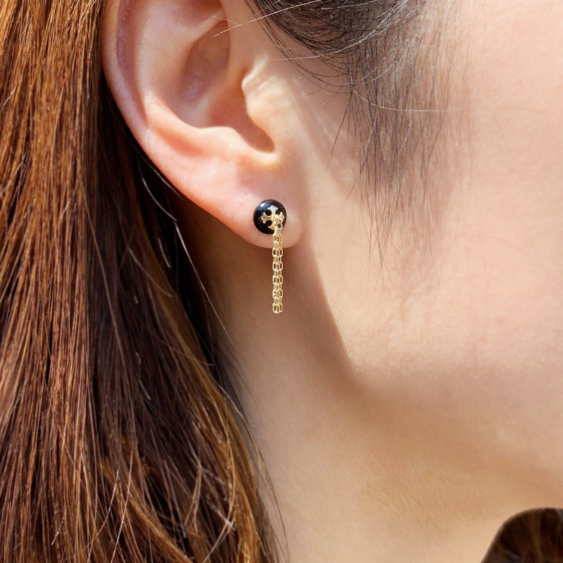 K10イエローゴールド(ポスト、キャッチ部分はK18イエローゴールド)、ホワイトシェル、オニキス |