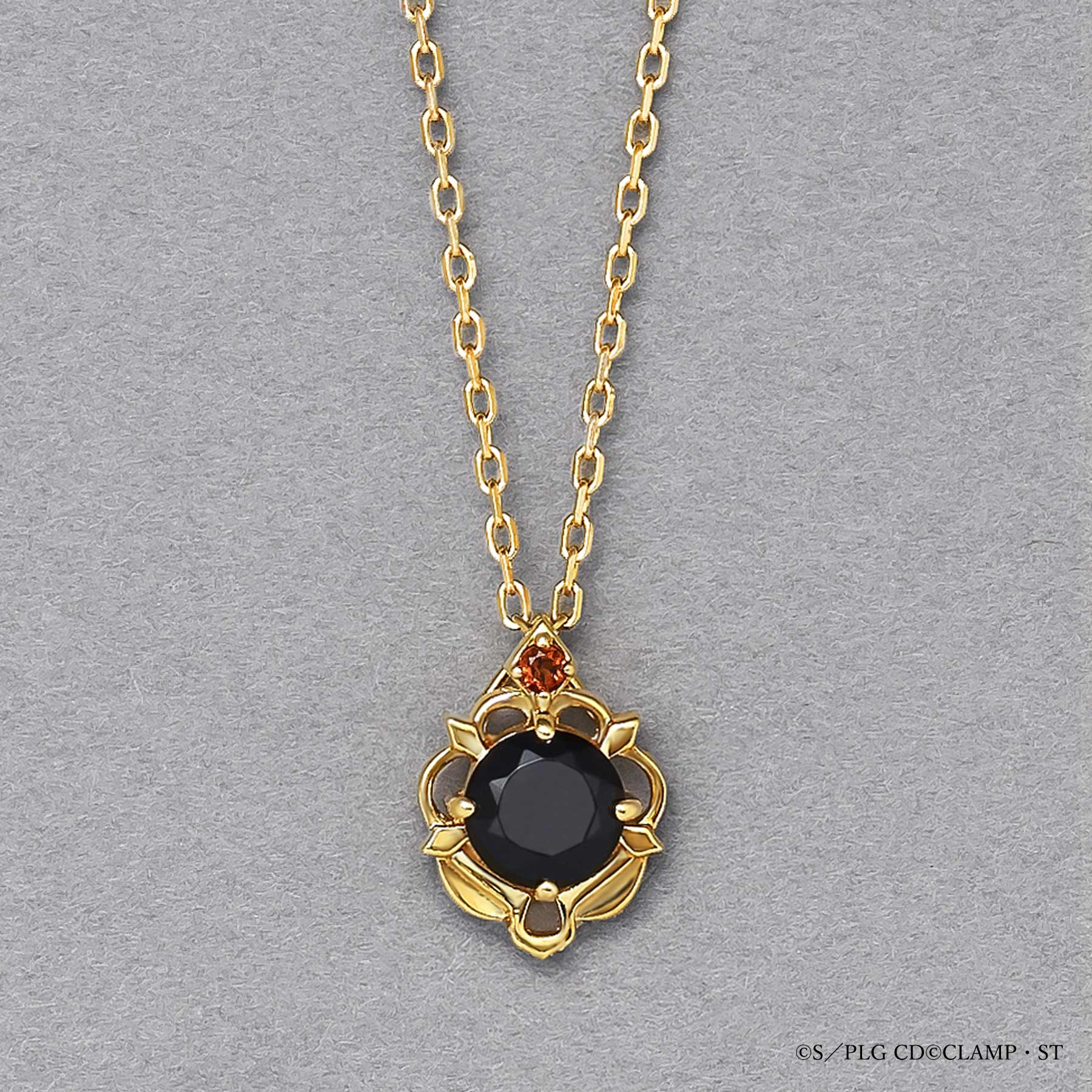 ルルーシュをモチーフにしたデザインのネックレス。ルルーシュのクールさと反逆心をイメージした全体のデザインはスタイリッシュな大人の印象です。覚醒した瞳をイメージしたガーネットが美しい煌きを放ちます。中央にギアスのシルエットが艶めき、視線を惹きつけます。オニキスとガーネットのコントラストが素敵な、洗練されたデザインに仕上がりました。コーディネートのアクセントにお楽しみいただけるネックレスです。